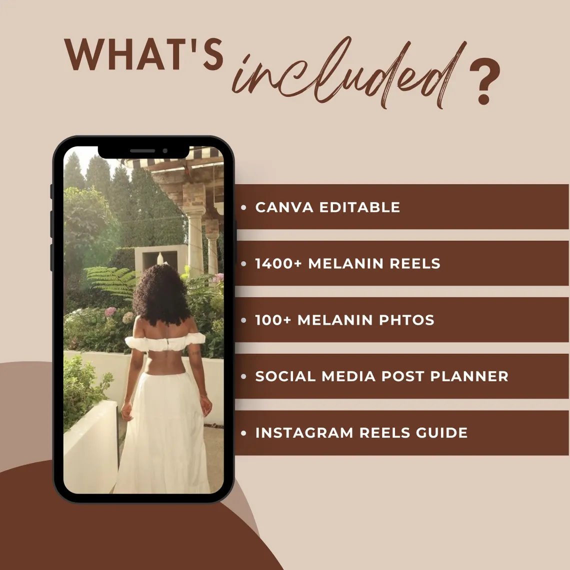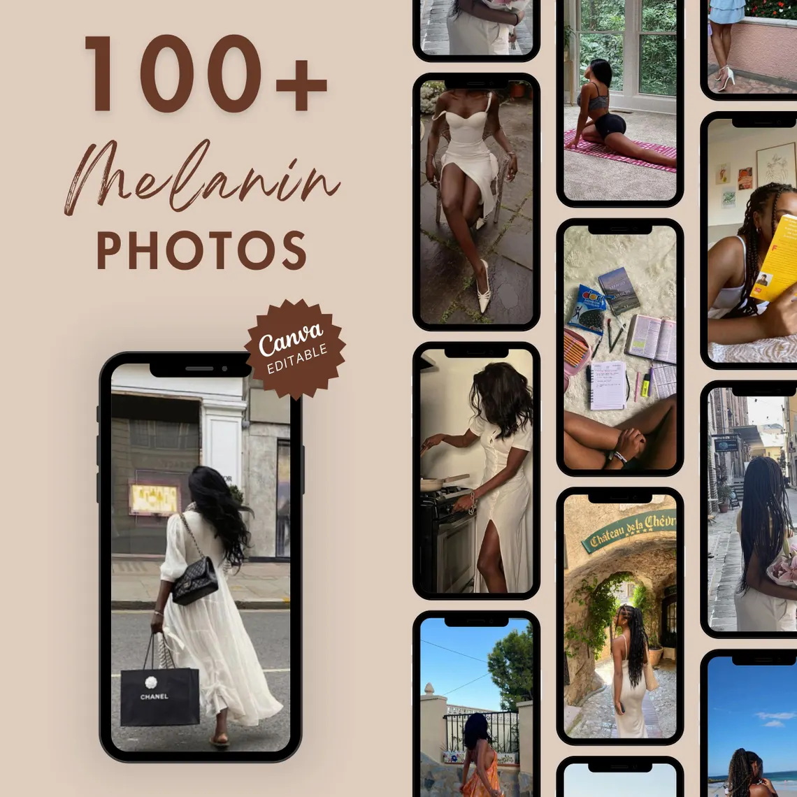 - 100+ Melanin Faceless Photos: Premium faceless photos, perfect for adding authenticity to your posts.