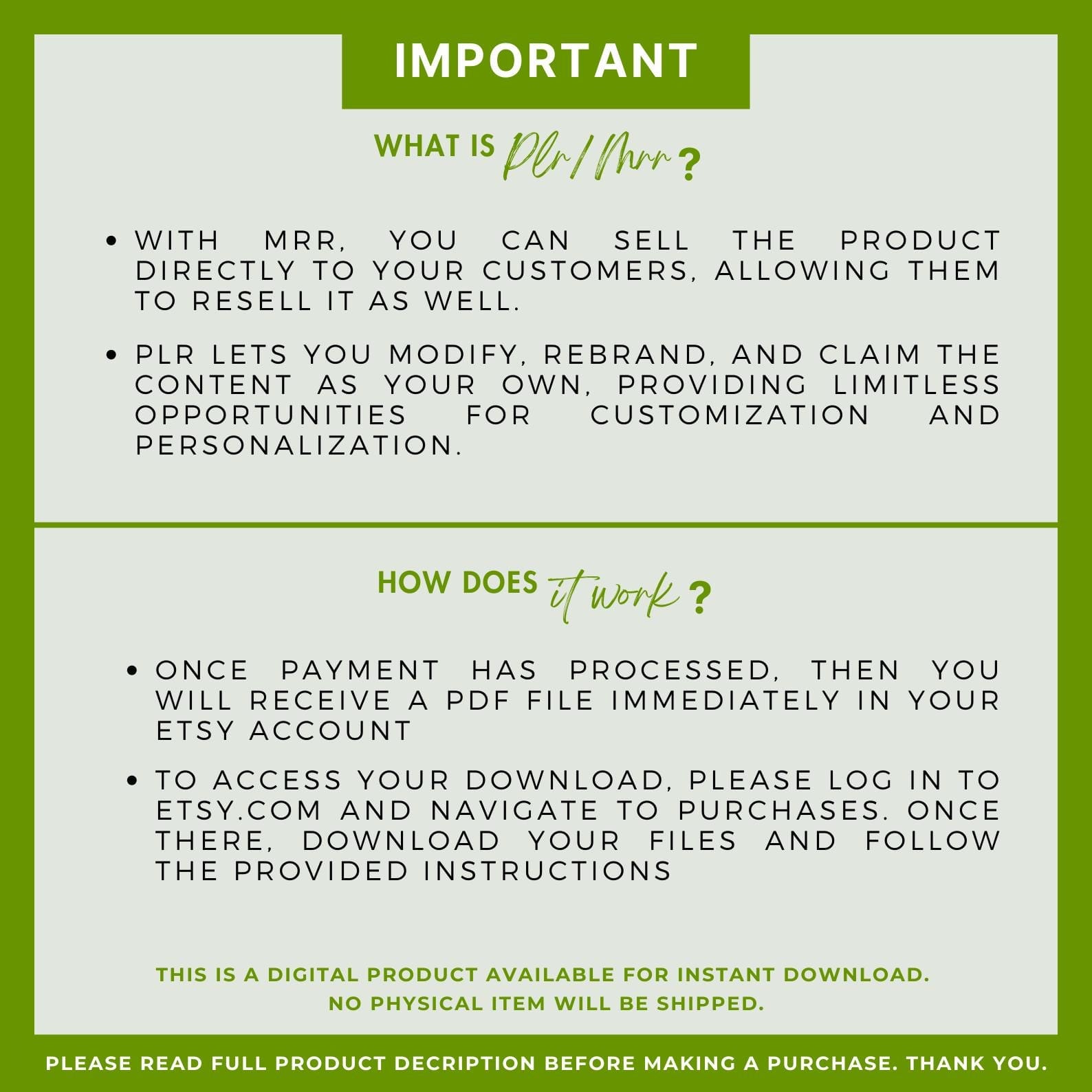 Full PLR (Private Label Rights) and MRR (Master Resell Rights)