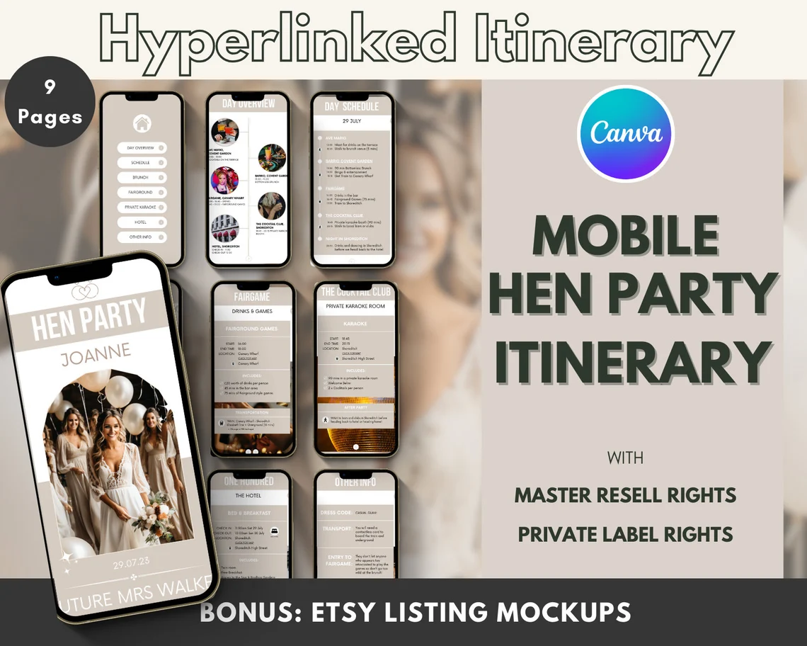 - Hyperlinked Mobile Hen Party Itinerary – 9 Pages