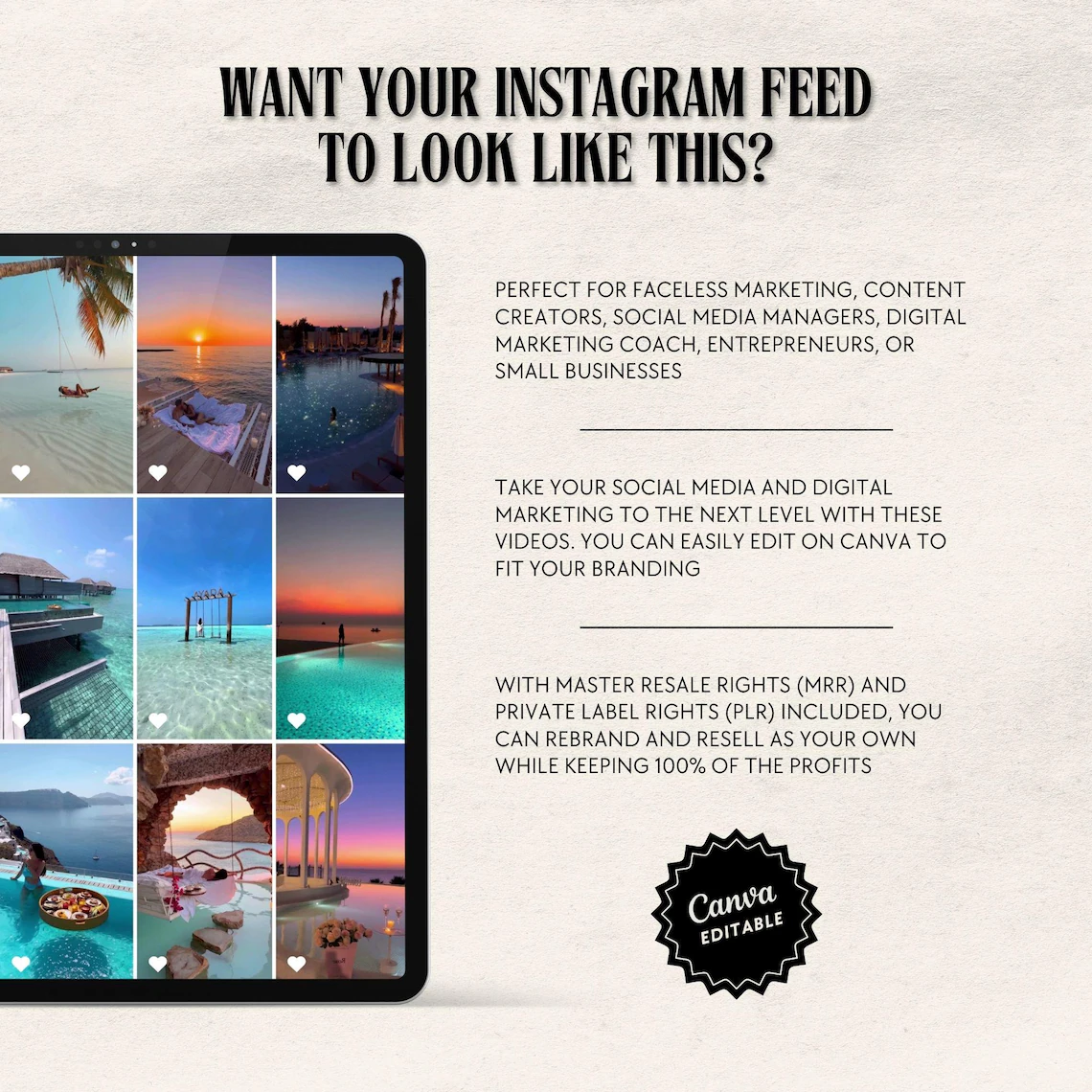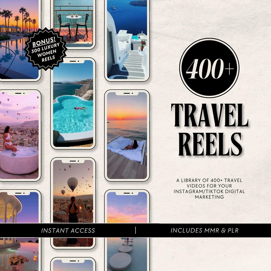 Download our 400+ Faceless Travel Reels Bundle for stunning vacation content! Elevate your digital marketing with PLR/MRR rights and editable Canva templates. Start now!