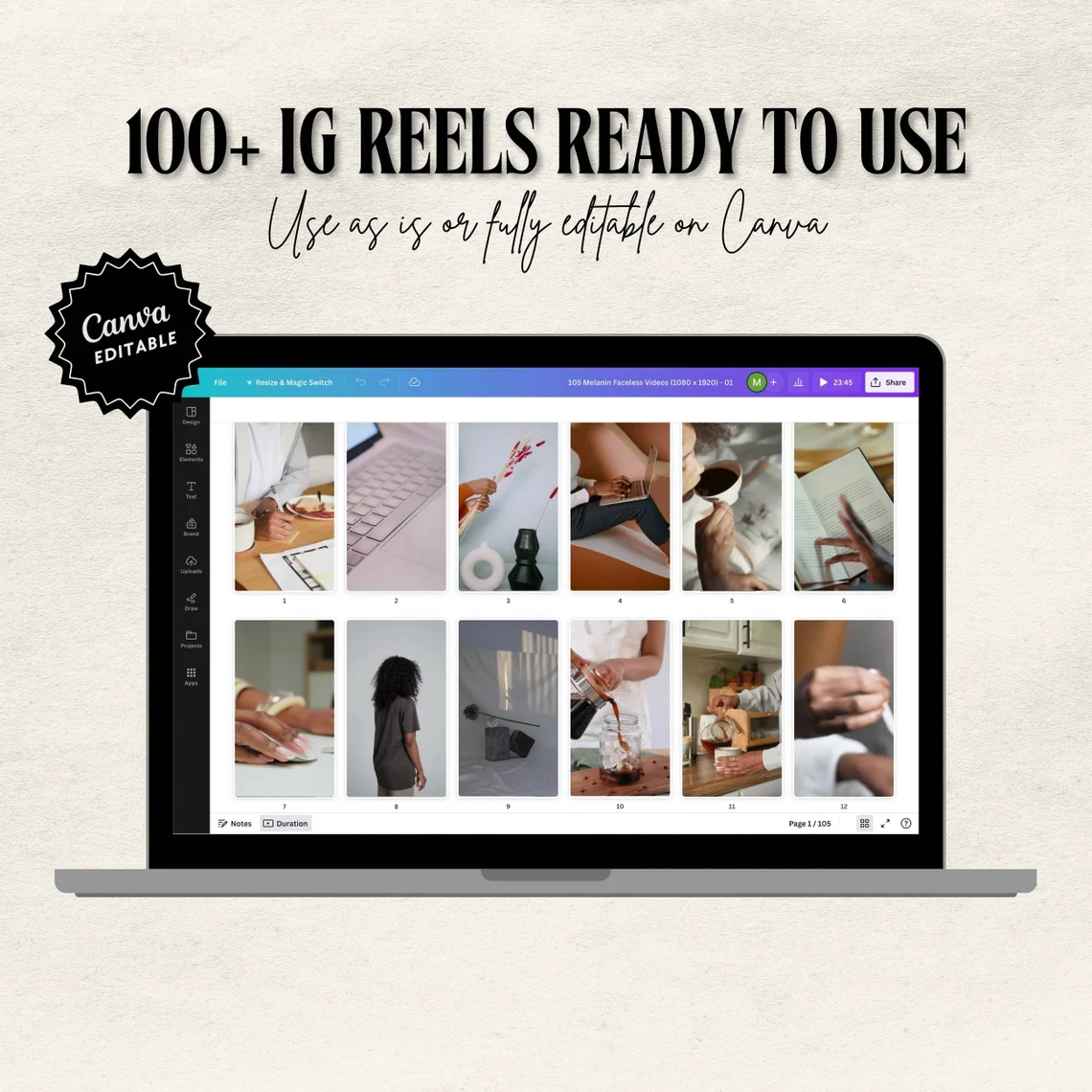 Unlock endless content possibilities with the Melanin Faceless Video Reels Bundle today – instantly downloadable, editable, and ready for your brand!